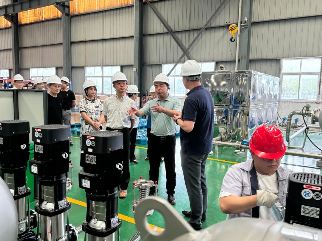 謝局長(zhǎng)一行依次參觀了我司的機(jī)械生產(chǎn)車間、電器車間、成品倉(cāng)、二次供水設(shè)備展廳,我司總經(jīng)理陳科宇詳細(xì)介紹了二次供水設(shè)備系統(tǒng)性的生產(chǎn)流程、工藝特點(diǎn)與優(yōu)勢(shì)以及目前的發(fā)展情況。