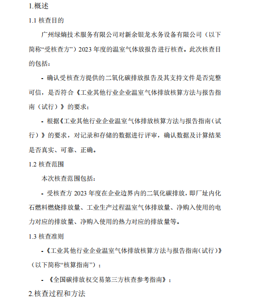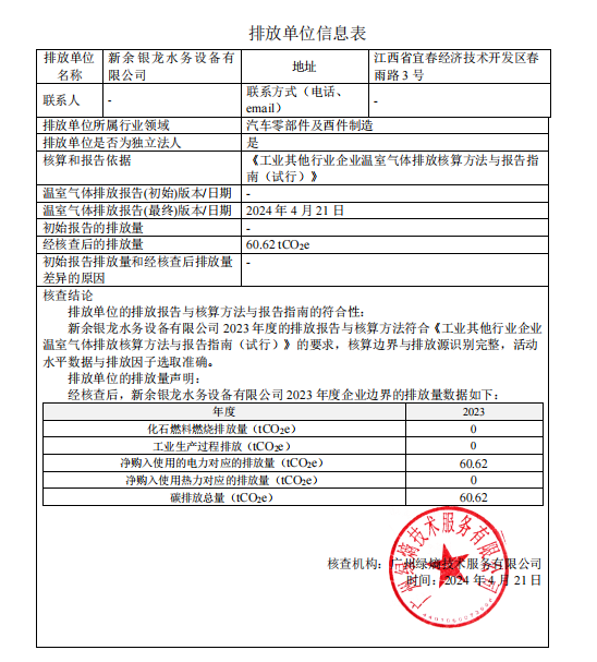 新余銀龍水務(wù)設(shè)備有限公司2023年度溫室氣體排放核查報告公示