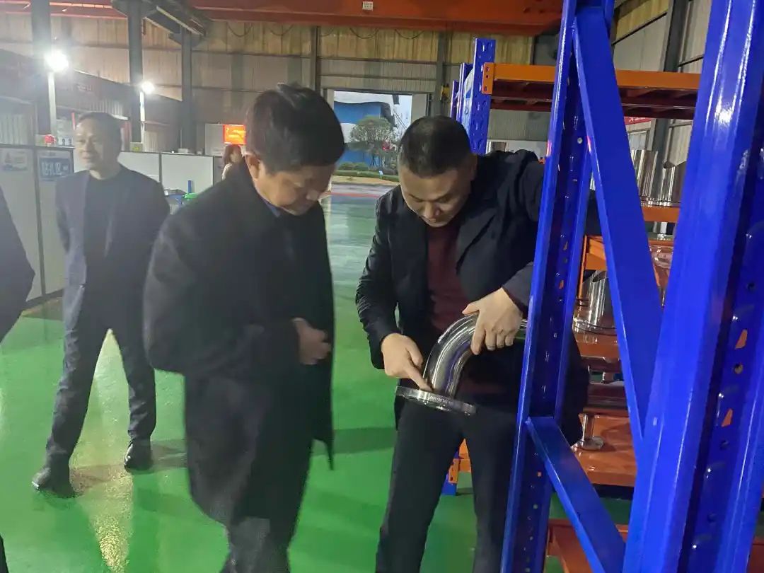 2023年12月11日下午,分宜城鄉(xiāng)供水一體化鞏固提升項目組分宜縣水利局局長葉明、政府辦秘書張釗,江西修江水利集團有限公司高級工程師、總監(jiān)周慶軍,分宜銀龍水務(wù)有限公司董事長袁云生等一行蒞臨新余銀龍水務(wù)設(shè)備公司參觀考察,我司總經(jīng)理陳科宇熱情接待項目組并陪同參觀與講解。