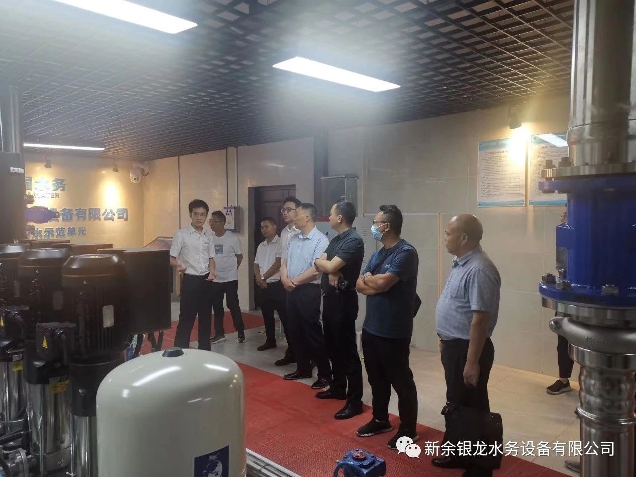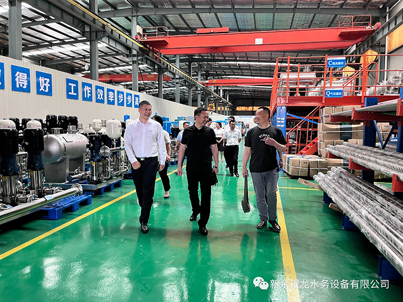 目前我司與懷化新晃已達(dá)成戰(zhàn)略合作,6月21日下午,新晃縣城市管理和綜合執(zhí)法局黨組書記、局長黃超及懷化銀龍水務(wù)有限公司總經(jīng)理姚曉明一行六人蒞臨我司實(shí)地考察,參觀交流并指導(dǎo)工作。黃局一行在我司總經(jīng)理陳科宇等公司領(lǐng)導(dǎo)的陪同下,先后參觀了公司機(jī)械生產(chǎn)車間、二次供水設(shè)備展廳、二次供水監(jiān)控管理平臺及新余市城北商務(wù)廣場標(biāo)準(zhǔn)化泵房示范單元。